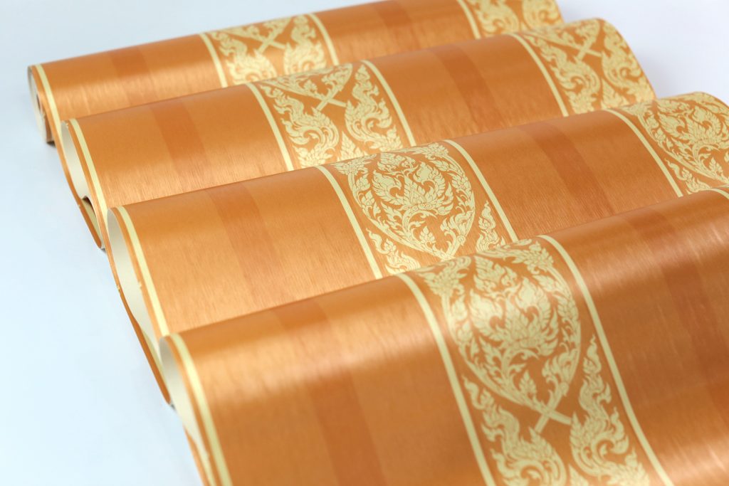 WALLPAPER ลายไทย วอลเปเปอร์ติดผนังลายกนกไขว้ช่อหางโต สีเหลือง รหัส JPS1104