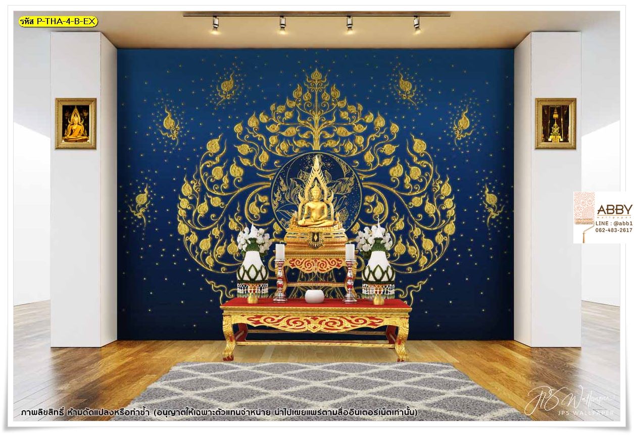ภาพกราฟิกต้นโพธิ์สีทองต้นใหญ่ตัดกับพื้นหลังแบบไล่เฉดสี มีความทันสมัย สามารถเข้ากับบ้านที่ต้องการความเป็นโมเดิร์น แต่ยังคงความเป็นห้องพระของชาวพุทธ โดยใช้ต้นโพธิ์เป็นสัญลักษณ์ของความเป็นพุทธศาสนา อีกทั้งพื้นหลังมีทั้งการไล่เฉดสีน้ำเงิน สีแดง สีน้ำตาล สีเขียว หรือสีดำ เพื่อเพิ่มอารมณ์ความรู้สึกและสีสันให้กับห้องพระอีกด้วย